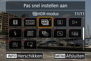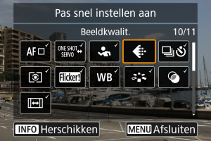 - Items op het scherm Snel instellen zijn met een vinkje gelabeld. U kunt de items gelabeld met een vinkje verwijderen.