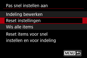 - Selecteer [Reset instellingen] om de standaard items en lay-out van het scherm Snel instellen te herstellen.