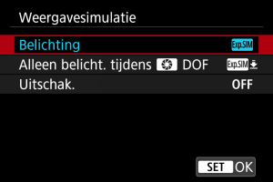 Met weergavesimulatie komt de helderheid van het beeld en de scherptediepte beter overeen met de werkelijke helderheid (belichting) van uw opnamen.
