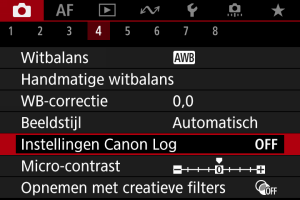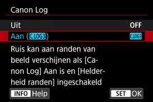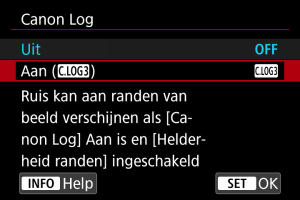 : Lensafwijkingscorrectie] is ingesteld op [Inschak.] wanneer Canon Log is ingesteld.