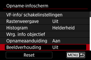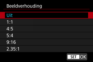 Als u de aspect ratio van het beeld gaat wijzigen bij het bewerken van de opgenomen video, kunt u aspectmarkeringen weergeven op het video-opnamescherm (tijdens stand-by en opname) om de uiteindelijke beeldhoek na bewerking te kunnen zien.