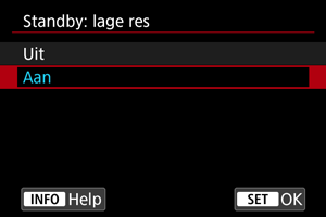: Standby: lage res] is ingesteld op [Uit] en kan in de volgende gevallen niet worden gewijzigd.