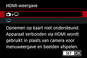 ]. Cameramenu's en beelden afspelen worden alleen weergegeven op het scherm dat is aangesloten via HDMI.