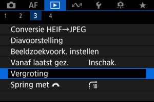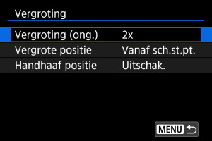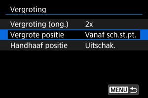 De positie ingesteld in [Vergrote positie] wordt gebruikt bij het weergeven van volgende beelden in vergrote weergave.