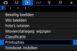 - RAW/HEIF-beelden en video's kunnen niet voor printen worden geselecteerd. Houd er rekening mee dat RAW/HEIF-beelden en video's niet worden gespecificeerd voor afdrukken, ook als u alle beelden specificeert met [Meerdere].