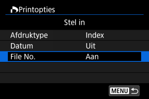 - Stel de opties [Afdruktype], [Datum] en [File No.] in.