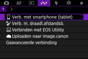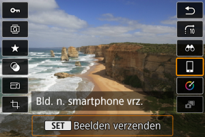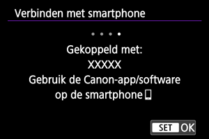 - Bij smartphones die aan de camera zijn gekoppeld, staat de aanduiding [