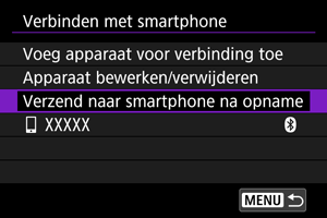 Uw opnames kunnen automatisch worden verzonden naar een smartphone. Voordat u deze stappen doorloopt, dient u ervoor te zorgen dat de camera en de smartphone met elkaar verbonden zijn via Wi-Fi.
