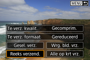 Alle beelden die aan de zoekcriteria voldoen zoals ingesteld in [: Beeldzoekvoork. instellen] tegelijk verzenden. Zie Zoekcriteria voor beelden instellen voor meer informatie over [