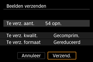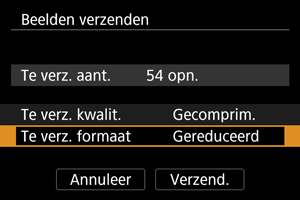 - Het selecteren van het gereduceerde formaat voor foto's is van toepassing op alle foto's die op dat moment worden verzonden. Merk op dat foto's met formaat