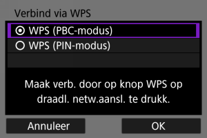 De volgende twee verbindingsmethoden zijn beschikbaar. U kunt gemakkelijker verbinding maken via WPS in PBC-modus.