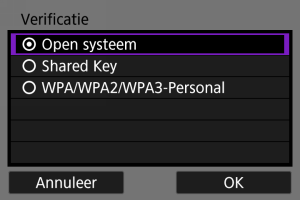 - [Verificatie]: Open systeem, Shared Key of WPA/WPA2/WPA3-Personal