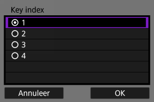 - Het scherm [Key index] wordt weergegeven voor WEP-gecodeerde access points.