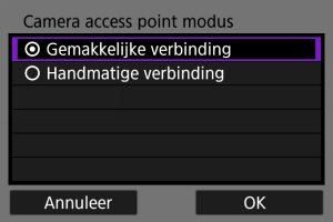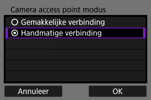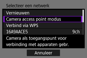 Selecteer [Camera access point modus] op het [Selecteer een netwerk]-scherm.