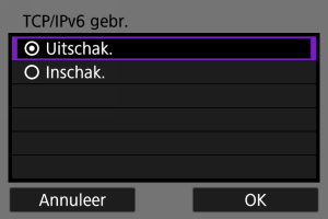 - Selecteer [Inschak.] om IPv6 te gebruiken.