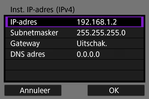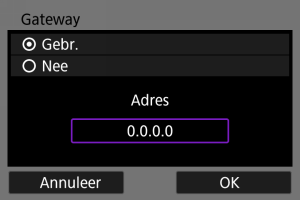 - Selecteer [Inschak.] en vervolgens [Adres] om een gateway te gebruiken.
