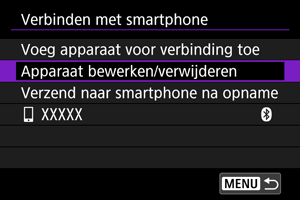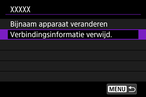 Sluit de Wi-Fi-verbinding voordat u verbindingsinstellingen voor andere apparaten bewerkt of verwijdert. Hier wordt [
