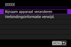 U kunt de bijnaam veranderen van apparaten waarmee de camera verbinding maakt.