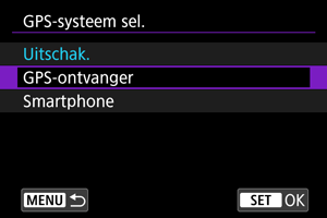 - Raadpleeg de instructiehandleiding voor de GP-E2 instructiehandleiding voor meer informatie over [Stel in].