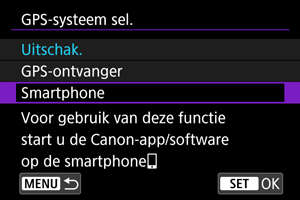 U kunt beelden van geotags voorzien met GPS-ontvanger GP-E2 (afzonderlijk verkrijgbaar) of een smartphone.