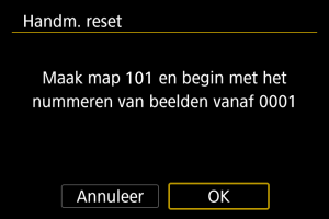 Voor het terugzetten van de bestandsnummering op 0001 of het beginnen met het bestandsnummer 0001 in een nieuwe map