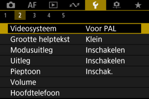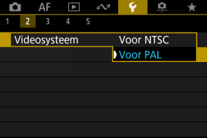 Stel het videosysteem in voor elke televisie die wordt gebruikt voor weergave. Deze instelling bepaalt de beschikbare framerates bij het opnemen van video's.