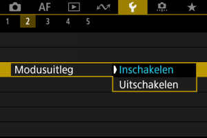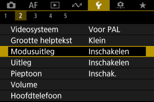 U kunt een korte beschrijving van de opnamemodus weergeven wanneer u schakelt tussen opnamemodi. De standaardinstelling is [Inschakelen].