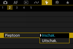 Schakelt het piepen uit voor de scherpstelling, zelfontspanner, sluiter en aanrakingsbediening.