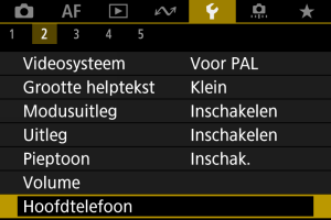 U kunt kiezen welke audio tijdens video-opname voor hoofdtelefoonuitvoer wordt gebruikt. Om audioruis in audio-opname te verminderen configureert u [Audioruisonderdruk.] ().