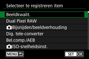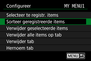 U kunt de volgorde van de in My Menu vastgelegde items wijzigen. Selecteer [Sorteer geregistreerde items], selecteer een item dat u wilt verplaatsen en druk vervolgens op de knop
