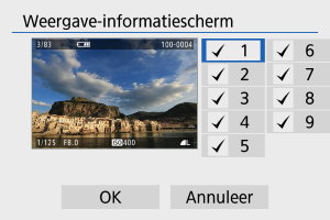 U kunt schermen en de bijbehorende informatie opgeven die tijdens het afspelen van beelden worden getoond.