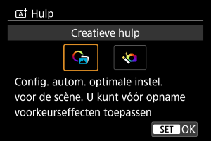 : Geg. Creatieve hulp behoud.] in op [Inschak.].