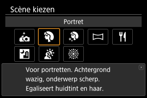 Gebruik de modus [] (Portret) om de achtergrond onscherp te maken en de persoon die u opneemt te laten opvallen. Ook worden de huidtinten en het haar zachter gemaakt.