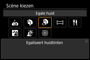 Met de modus [] (Egale huid) kunt u huidtinten er aantrekkelijker uit laten zien. Door beeldverwerking ziet de huid er gladder uit.