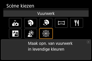 Gebruik de modus [] (Vuurwerk) om vuurwerk op te nemen met levendige kleuren.