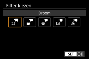 U kunt opnamen maken terwijl creatieve filtereffecten worden toegepast. Filtereffecten kunnen worden weergegeven voordat u een opname maakt.