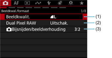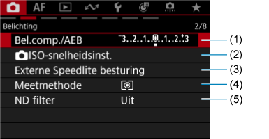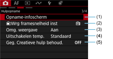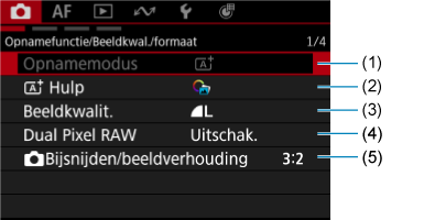 In de basismodi (modi ) verschijnen de volgende schermen.