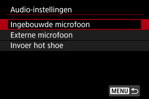 Configureer de microfoons die worden gebruikt bij video-opnamen. Zorg dat u bij het gebruik van externe microfoons ook de instructiehandleiding van de externe microfoons raadpleegt.