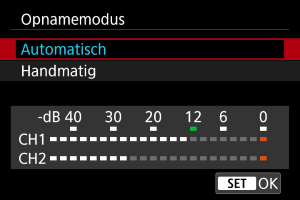 Opnameniveaus worden weergegeven in een niveaumeter onder aan het scherm.