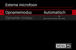 U kunt het geluidsopnameniveau aanpassen. Pas het niveau aan in [Opname niveau].