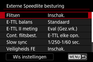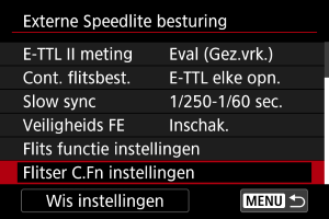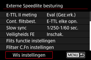- Selecteer [Wis flitserinstellingen] of [Wis alle SpeedliteC.Fn's].