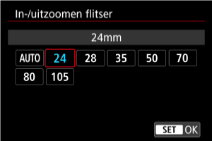 - (3) In-/uitzoomen flitser (flitsdekking)