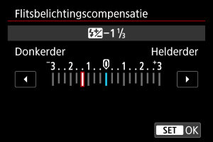 Net zoals de belichtingscompensatie instelbaar is, kunt u ook de flitseroutput instellen.