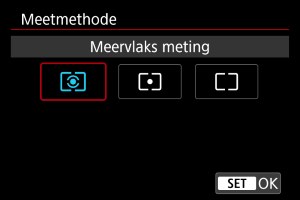 Er zijn methoden beschikbaar om de helderheid van het onderwerp te meten (meetmethoden). Meestal wordt meervlaksmeting aanbevolen. Meervlaksmeting wordt automatisch ingesteld in de basismodi (behalve in de modus :