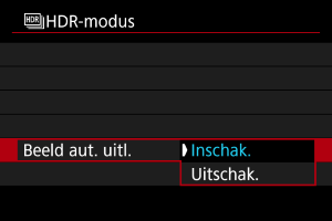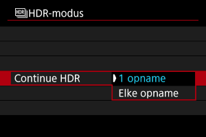 - Met [Elke opname] blijft u HDR-opnamen maken tot de instelling in stap 2 wordt ingesteld op [Uit].