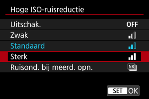 Merk op dat [Ruisond. bij meerd. opn.] niet beschikbaar is als de beeldkwaliteit is ingesteld op RAW of RAW+JPEG.