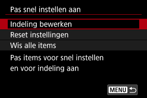 - Selecteer [Wis alle items] om alle items van de lay-out te verwijderen, zodat het scherm Snel instellen ook niet wordt weergegeven wanneer op