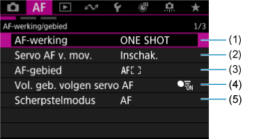 De beschikbare menu's zijn afhankelijk van de gekozen opnamemodus.