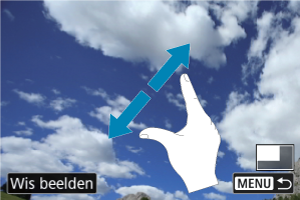 De camera beschikt over een touchscreen dat u kunt aanraken om het afspelen te bedienen. Ondersteunde aanraakhandelingen zijn overeenkomstig degene die gebruikt worden met smartphones en gelijksoortige apparaten. Druk eerst op de knop om afspelen via touchscreen voor te bereiden.