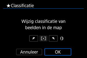 : Classificatie] de optie [Alle beelden in map] of [Alle beelden op kaart] selecteert, worden alle beelden in de map of op de kaart beoordeeld.